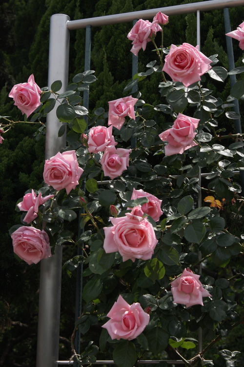 神代植物公園で撮影した2011年5月25日のピンク色のバラです。 とてもクイーンエリザベスがきれいと思いました。 CanonのキスデジXとEF-S 18-55mm ISです。コメントいただけるととても喜びます。よろしくお願いします。 RAW撮影で、トリミングして、トーンカーブ、露出を変えました。微妙な色合いが楽しめると思いました。