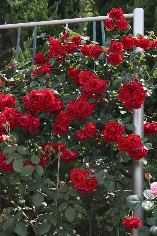 神代植物公園で、赤色のバラを2011年5月25日に撮影しました。コメントいただけるととても喜びます。よろしくお願いします。 RAW撮影で、トリミングして、トーンカーブ、露出を変えました。微妙な色合いが楽しめると思いました。 カメラは、CanonキスデジX。レンズは、EF-S 18-55mm ISを使っています。 国際バラ新品種コンクールのバラがとてもきれいと思いました。