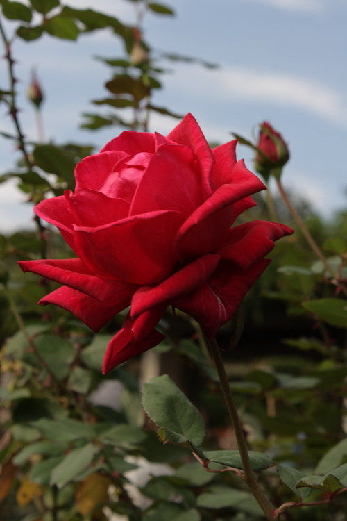 神代植物公園で、秋バラを撮影。10月23日に撮影しました。きれいな赤いバラ、青空の下という訳でなかったのが、若干残念な写真です。天気がどんどん変わっていました。