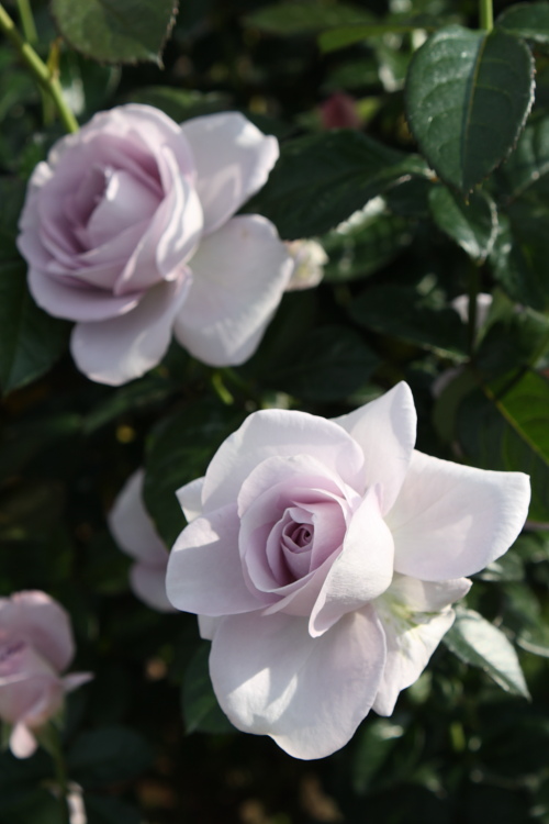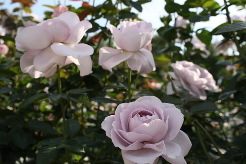 神代植物公園で10月23日に撮影した薄紫色の秋バラです。手前のバラだけにピントを合わせて撮影しました。