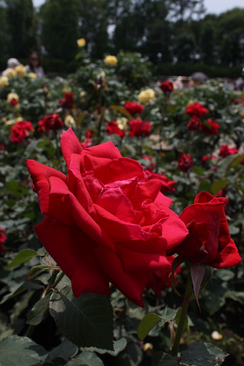 神代植物公園で、赤色のバラを2011年5月25日に撮影しました。 ノックアウトがとても鮮やかと思いました。コメントいただけるととても喜びます。よろしくお願いします。